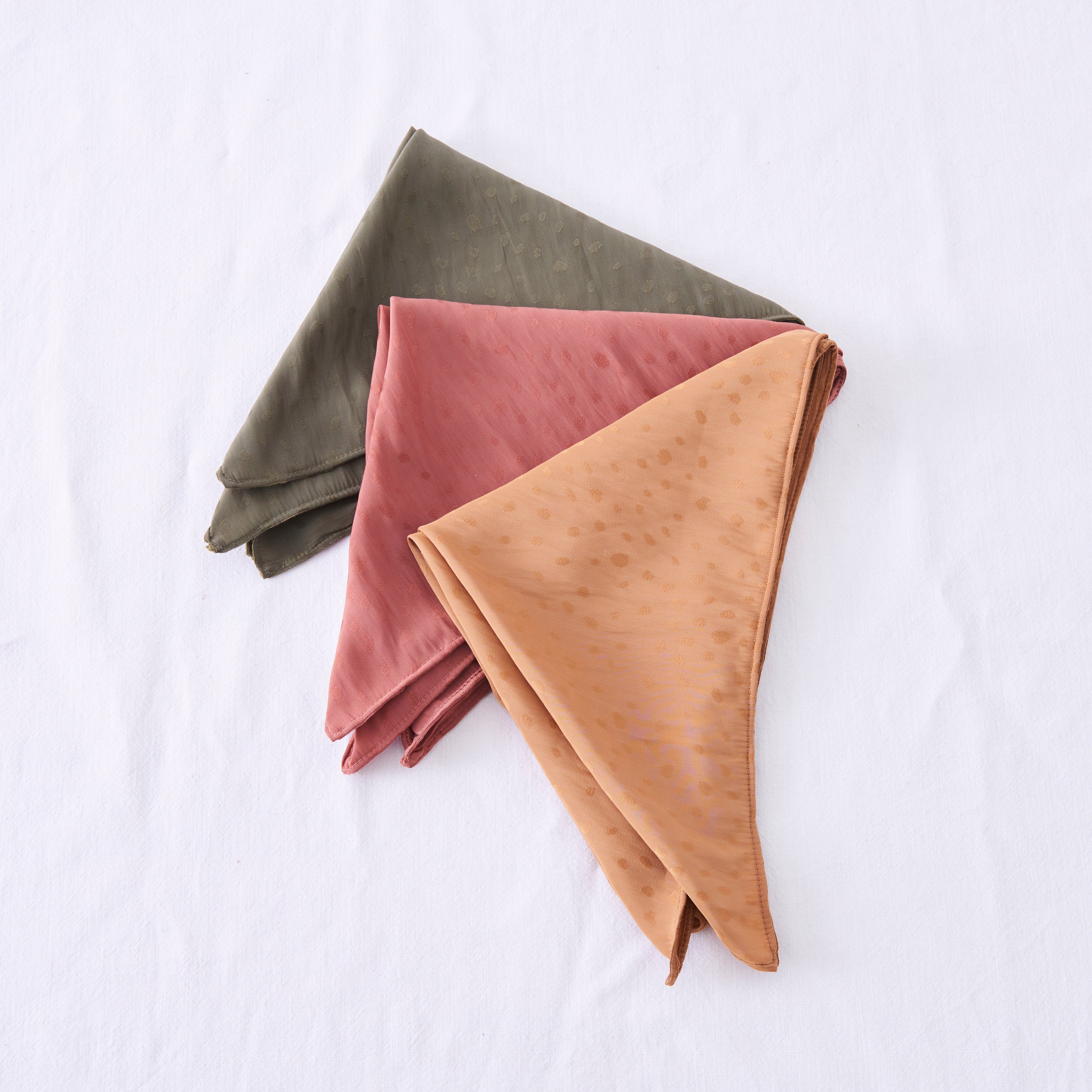 ジャガードのような不規則なドット柄が可愛い、サテンスカーフ。