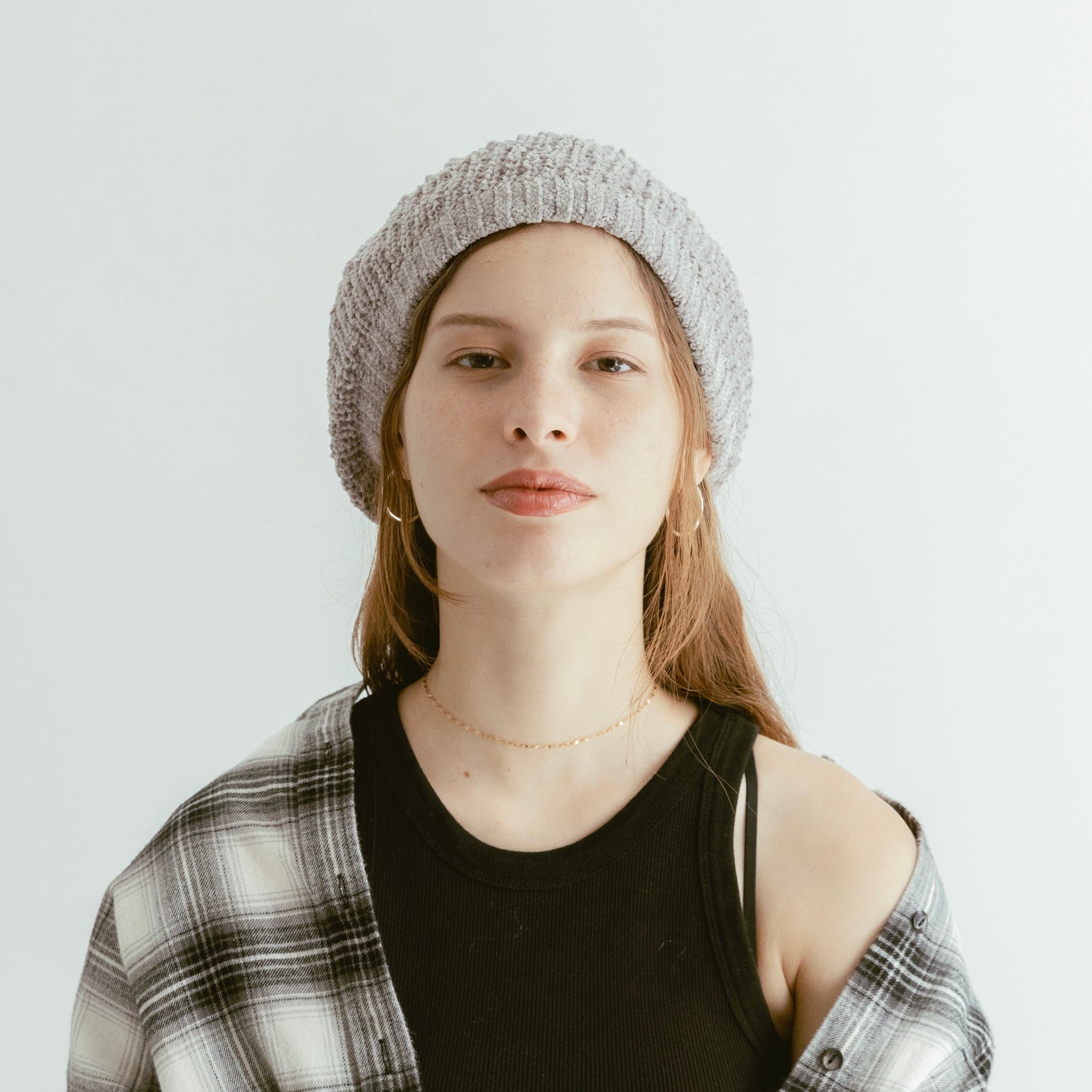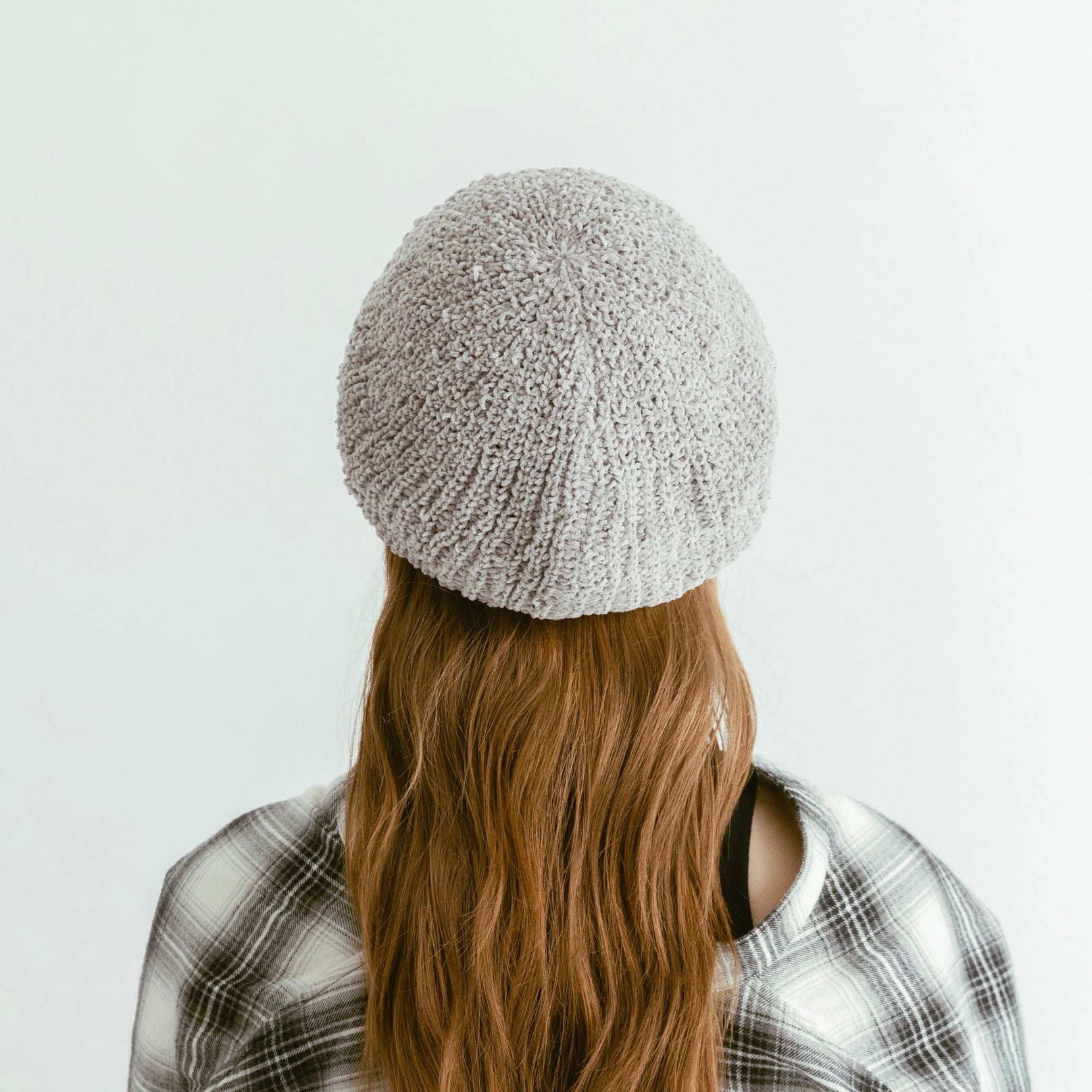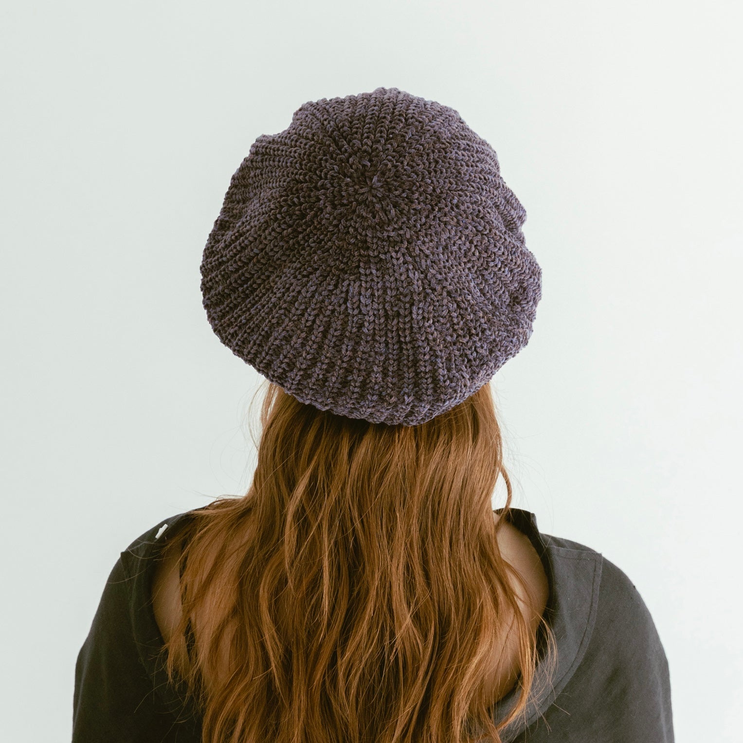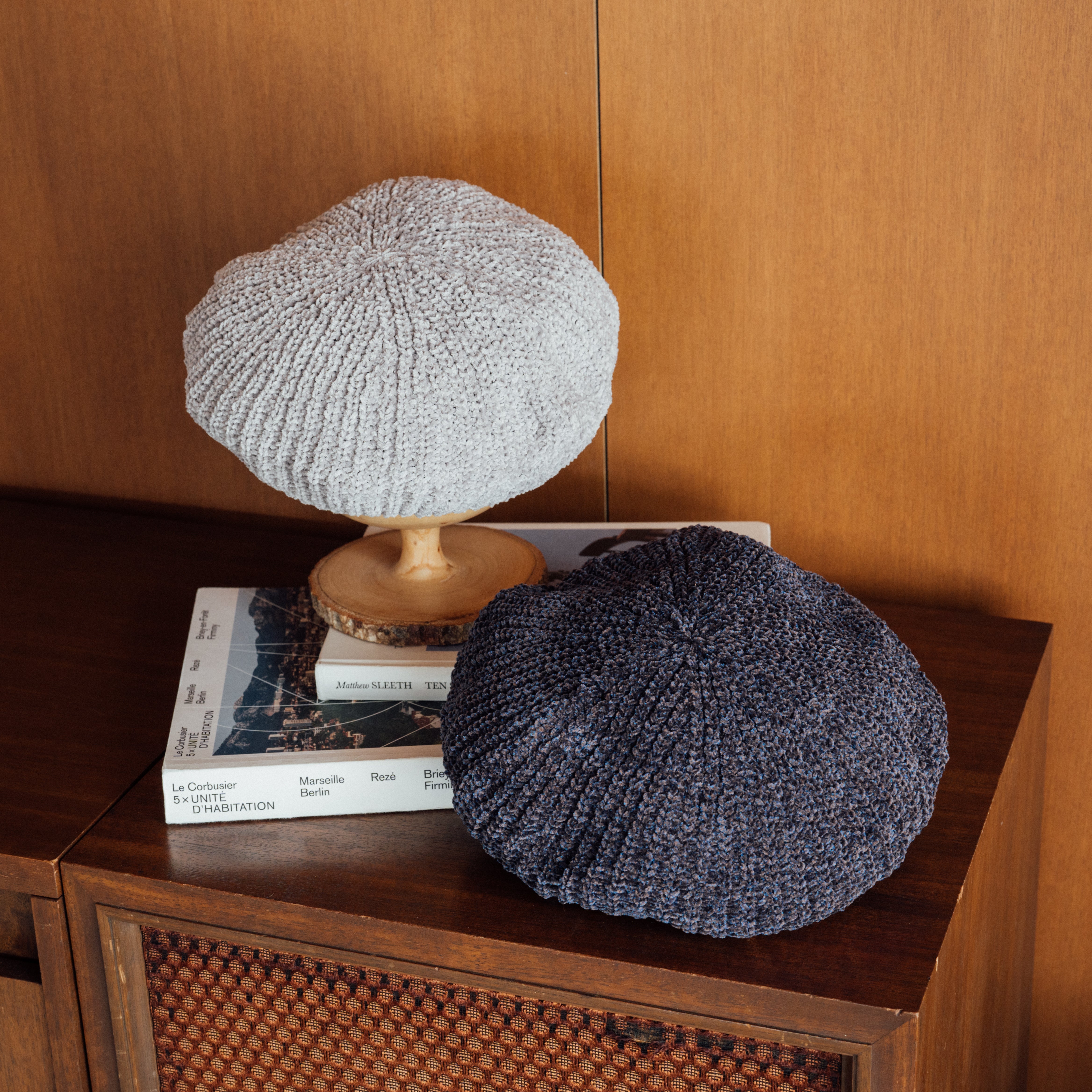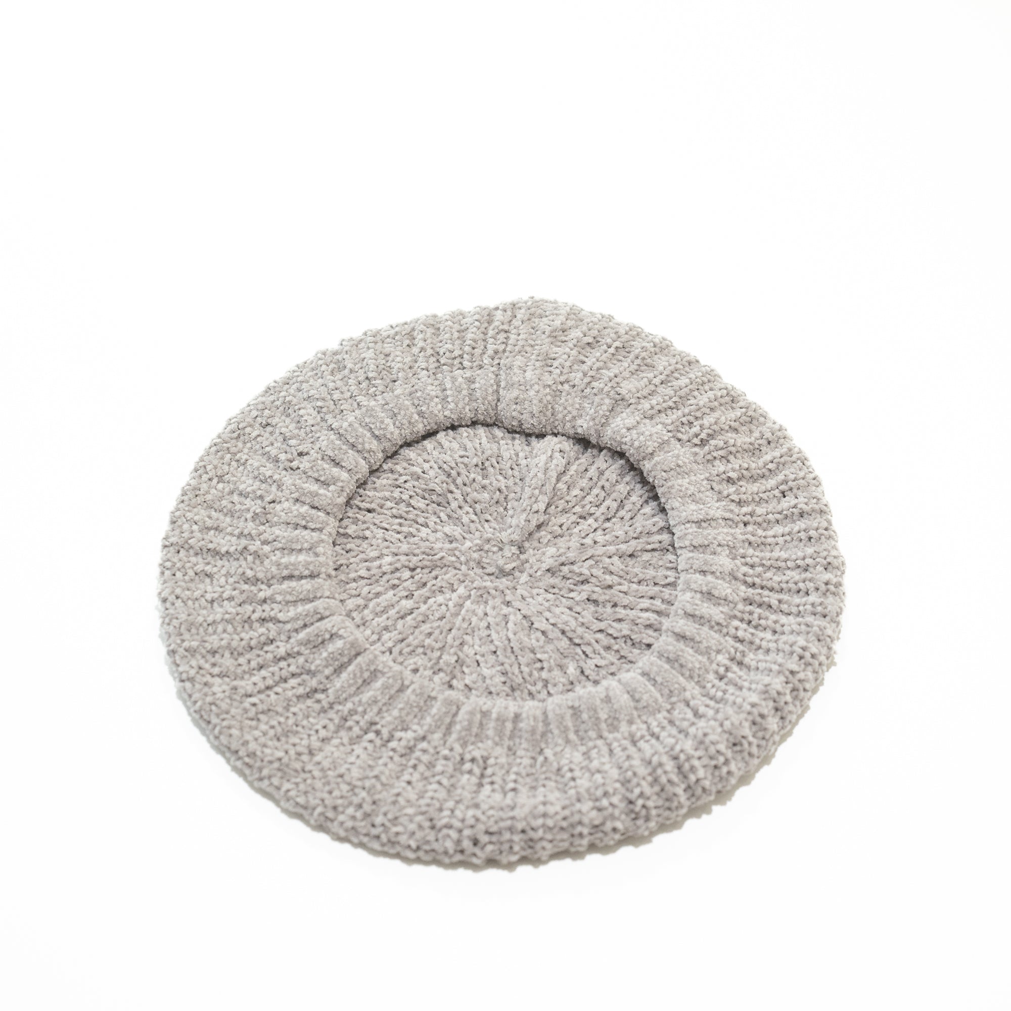 ベルベットのようなモールヤーン糸で編まれたニットベレー。