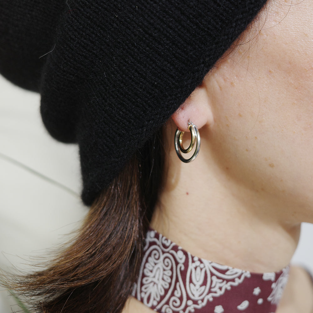 シルバーとゴールドの組み合わせがポイントになるフープピアス。