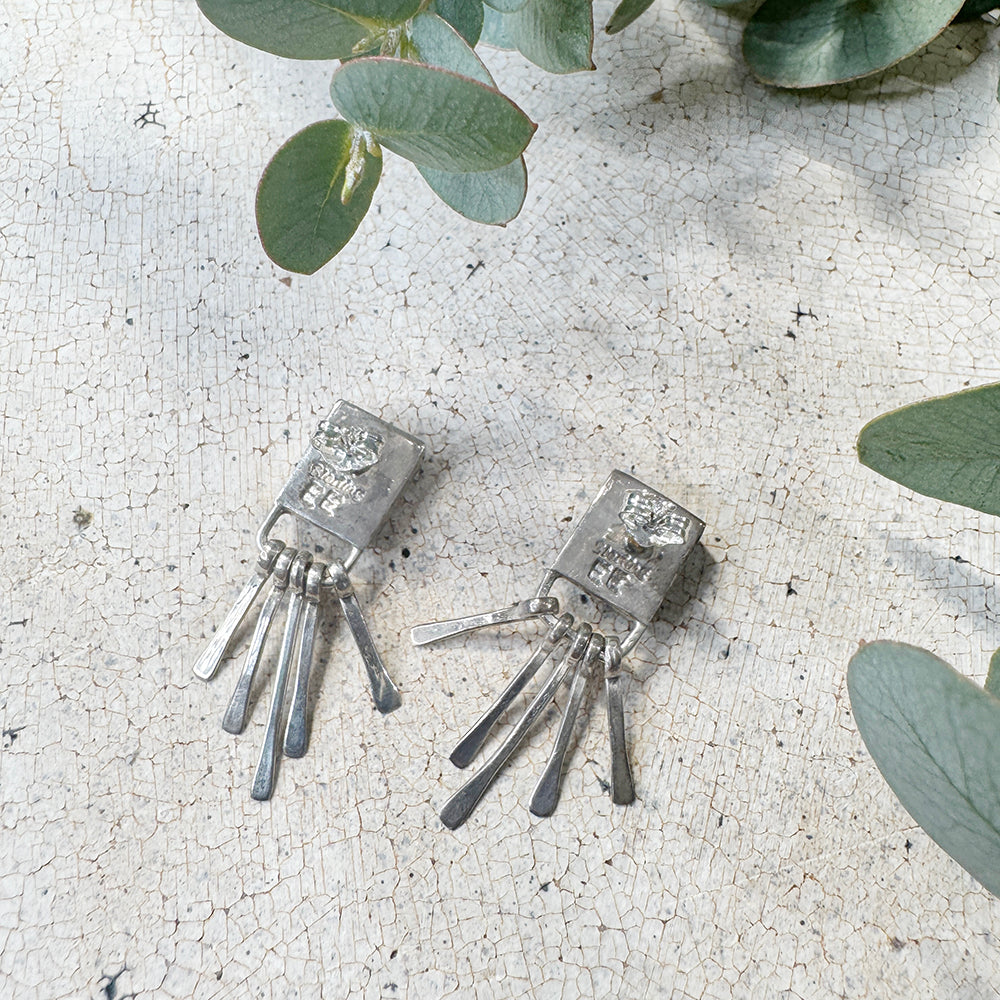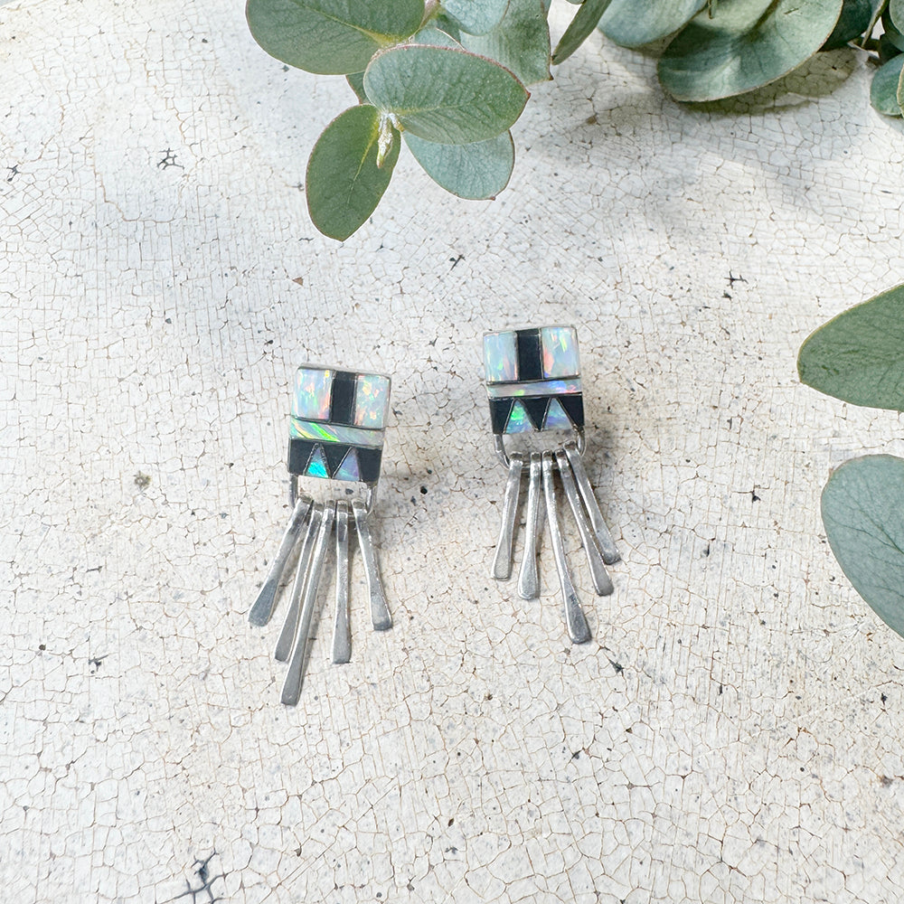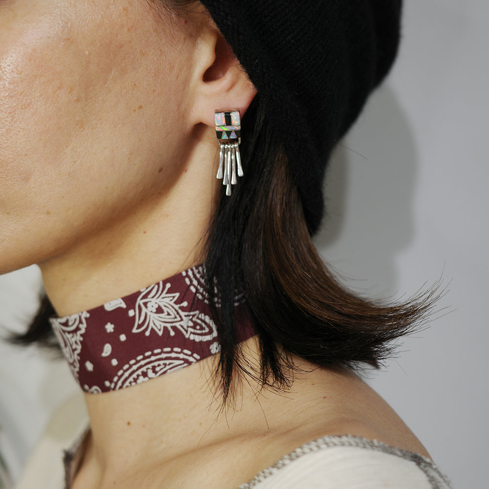 アメリカの南西部に住むズニ族のアーティストが「インレイ技法」で作ったポストタイプのピアスです。
