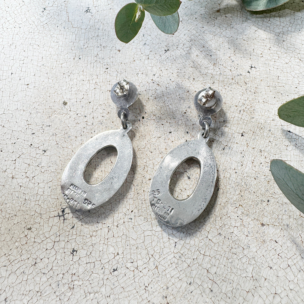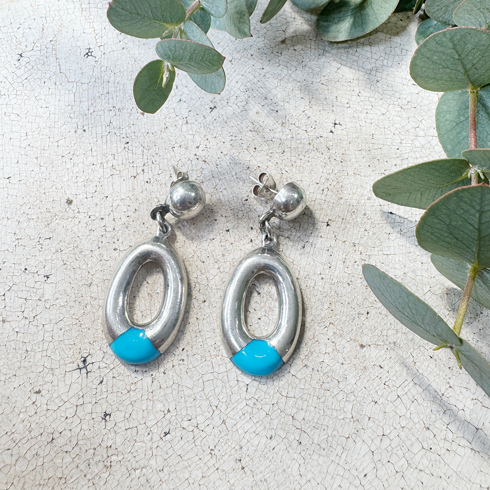 揺れるオーバルのシルバーに鮮やかなターコイズがポイントのポストタイプのピアス。