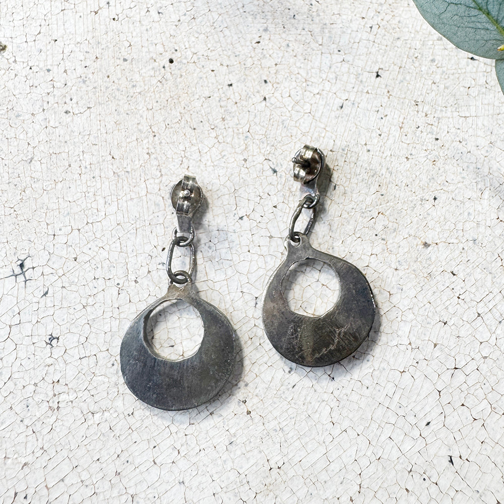 ズニ族のインレイ手法によって作られたピアス。
